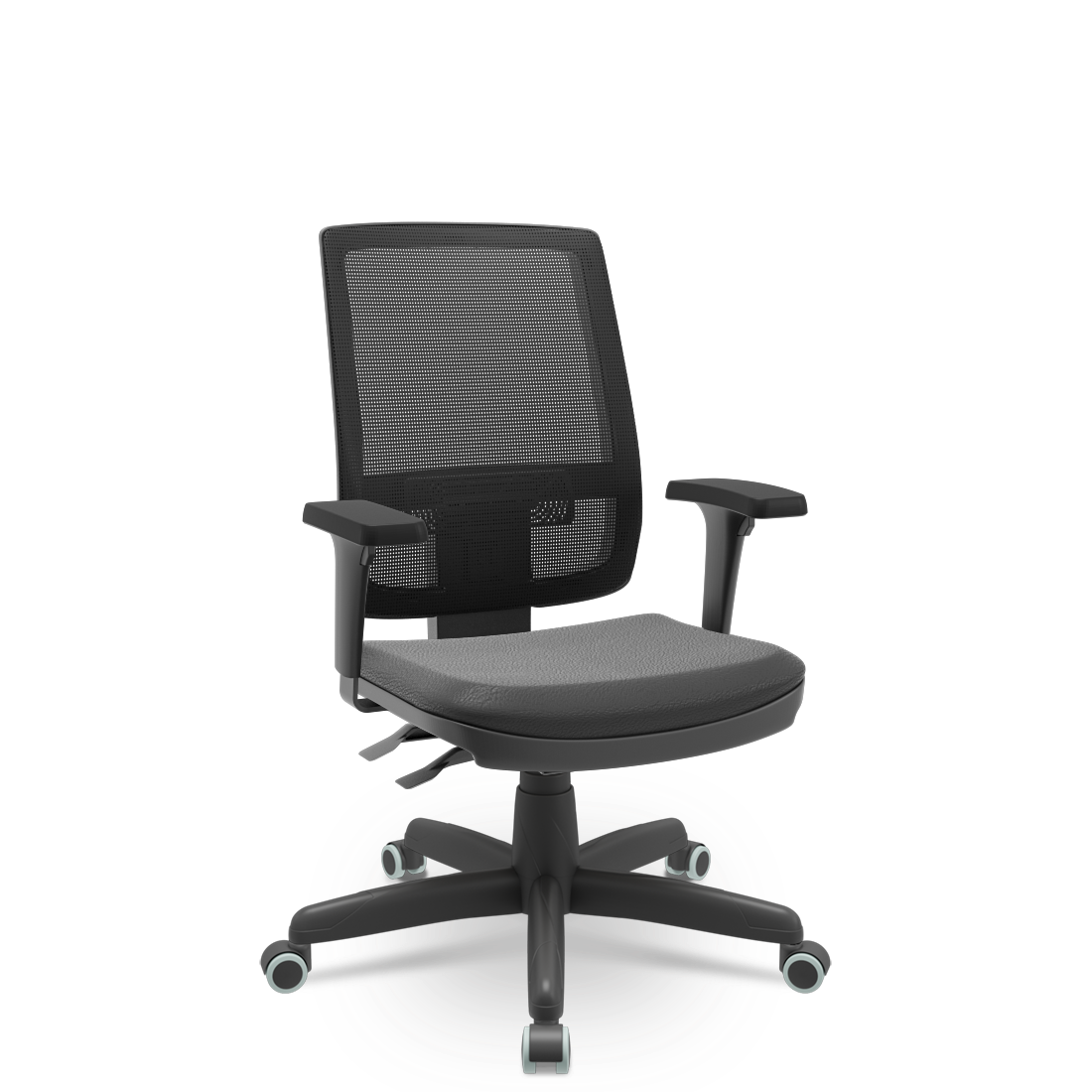 Mecanismo Back sistem, reclinação com travamento, ajuste de altura do encosto e altura com pistão a gás.