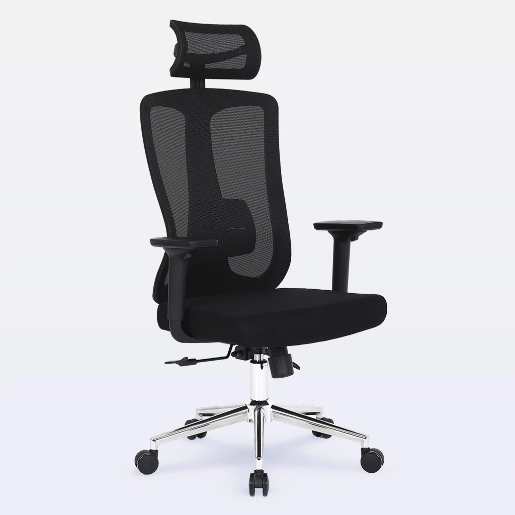 Encosto ergonômico com ajuste lombar manual que abraça sua coluna e mantém você confortável mesmo após horas contínuas de uso.