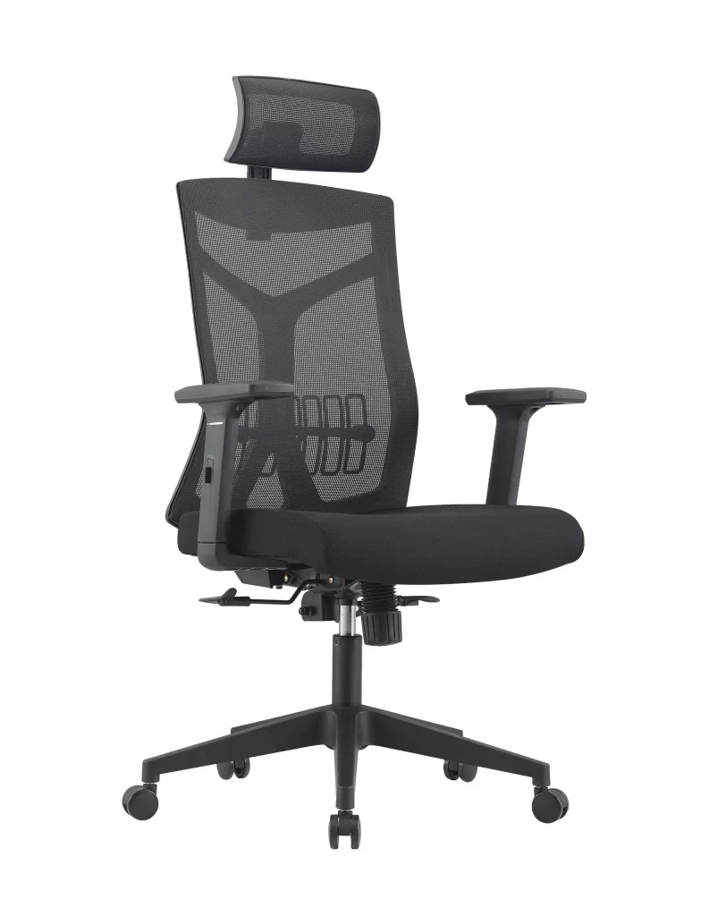 Características: Regulagem de altura do assento | Regulagem de altura dos braços | Assento com espuma injetada | Regulagem da inclinação do encosto | Sistema sincronizado (travamento do encosto em qualquer posição) | Apoio de lombar | Apoio de cabeça regulável |
